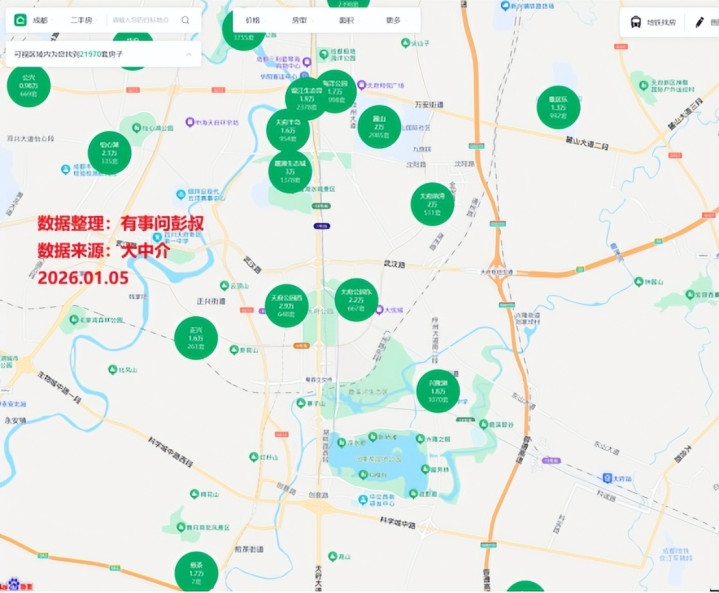 成都楼市那些有钱人还是挺稳的,像是麓湖生态城板块待售二手房数量从1584套减少到了1378套。